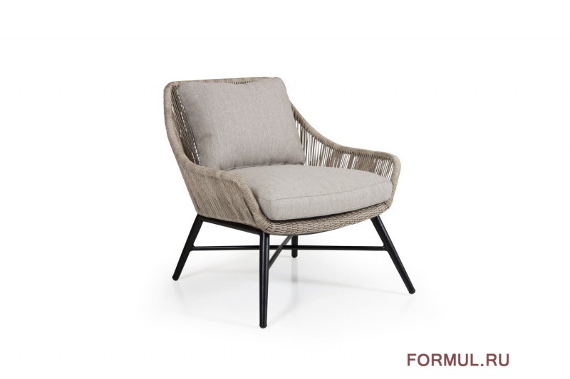 Веревочный ротанг и черный алюминий. Комфортная коллекция с современными закругленными контурами.