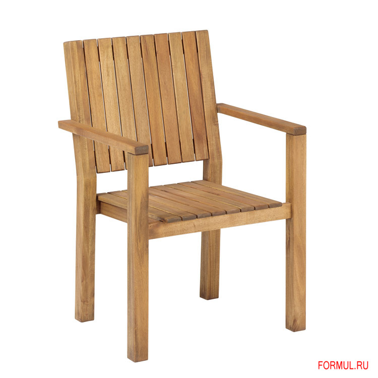 Практичное и удобное кресло из массива акации с защитной пропиткой и приятным линейным дизайном. Оснащено подлокотниками и спинкой. Между сидением и спинкой есть небольшой зазор. Кресло отлично вписывается в классический, может, даже слегка старомодный сад.