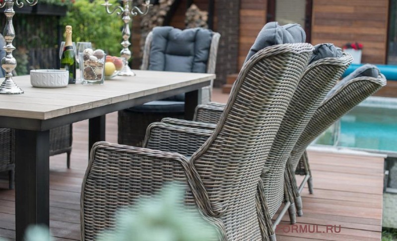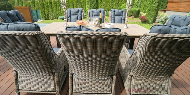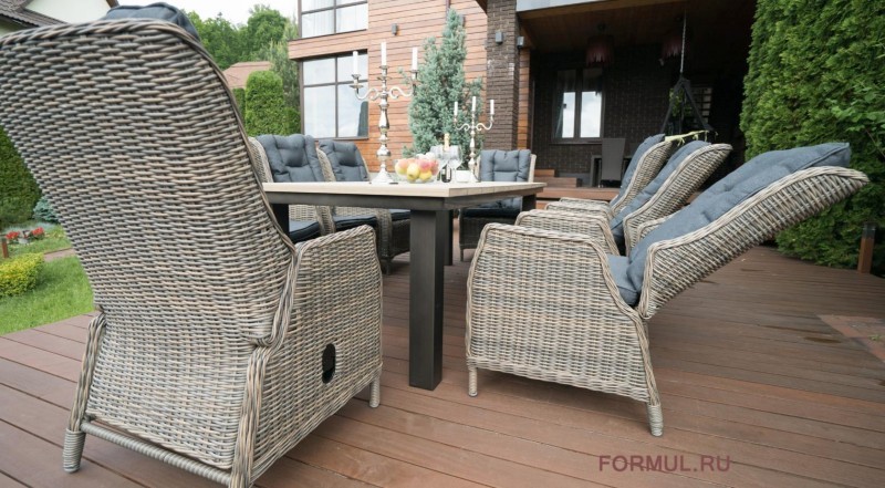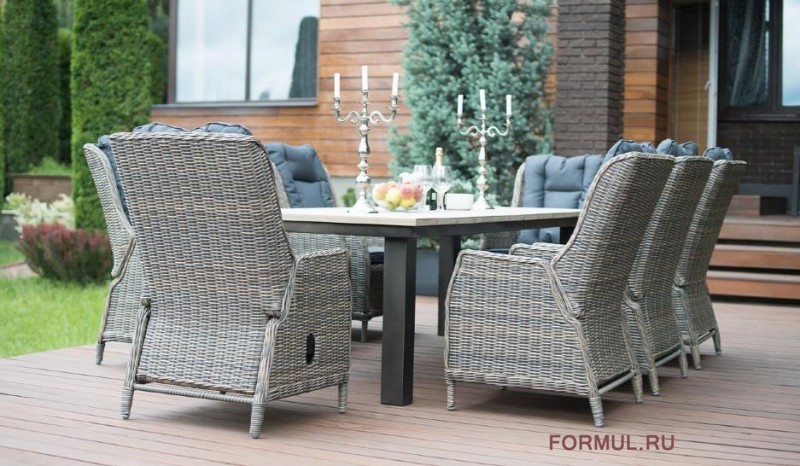 Новинка — кресло ВЕРОНА с регулируемой спинкой и необыкновенно мягкими подушками просто создана для расслабляющего отдыха! Каркас кресел изготовлен из алюминия, легкий прочный материал. Покрытие кресел — искусственное плетение имитирующее ротанг