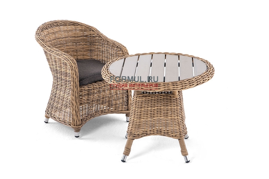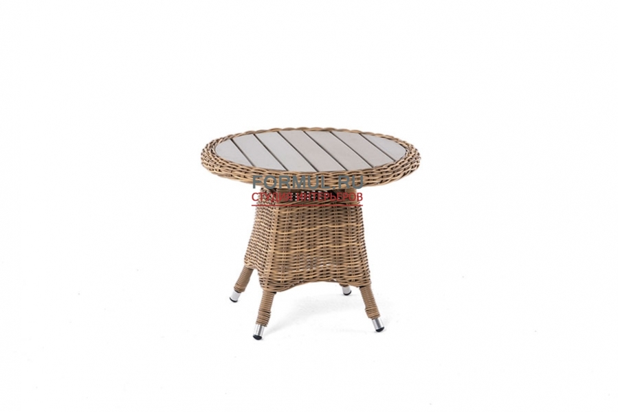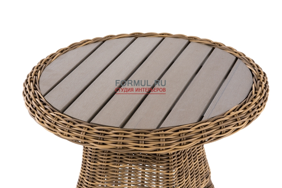 Детский стол Равенна выполнен из круглого искусственного ротанга соломенного оттенка.