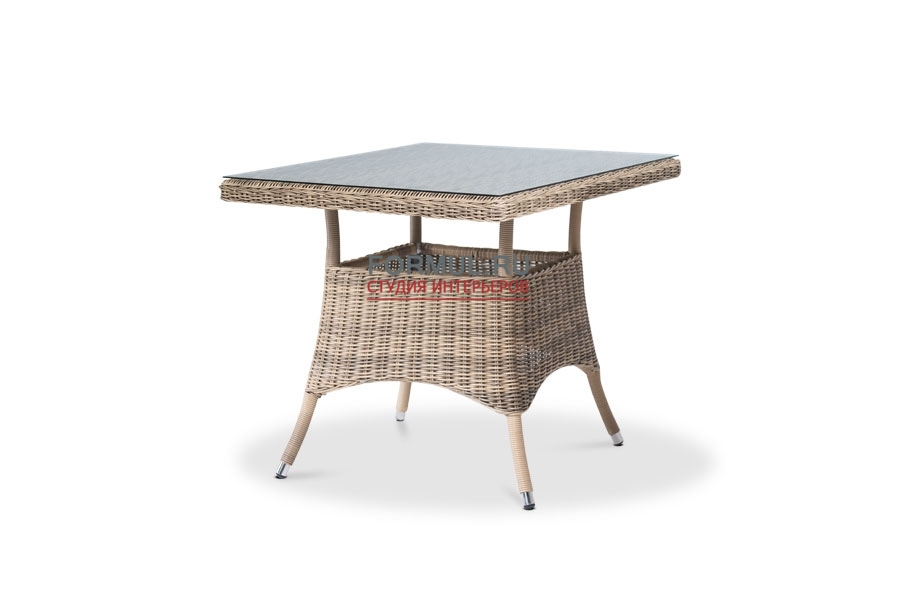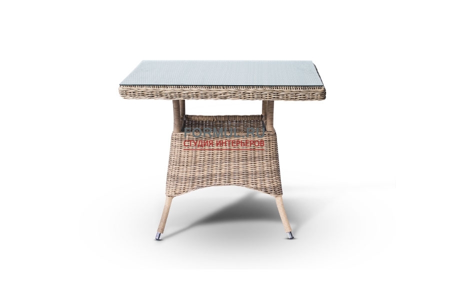 Стол "Айриш" со стеклянной столешницей толщиной 5мм, каркас выполнен из алюминия, искусственный ротанг из ручного круглого плетения.