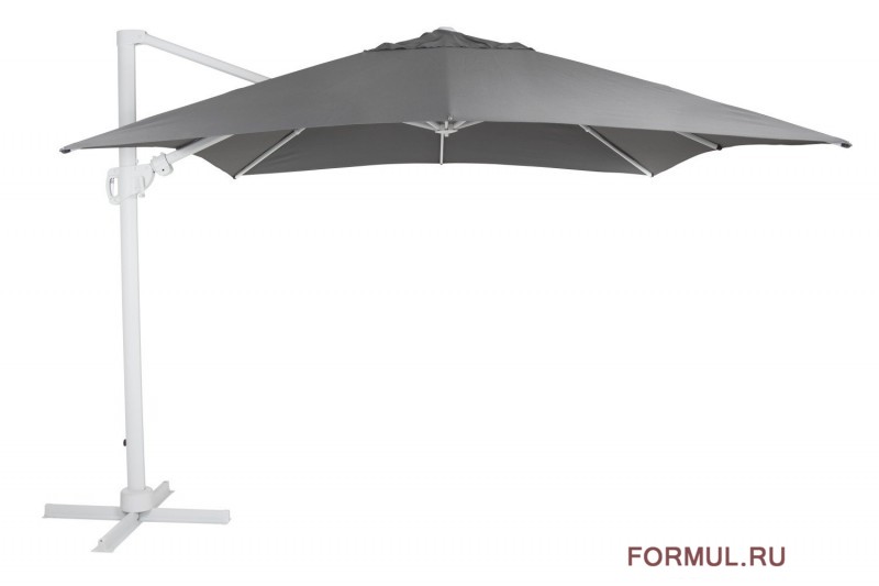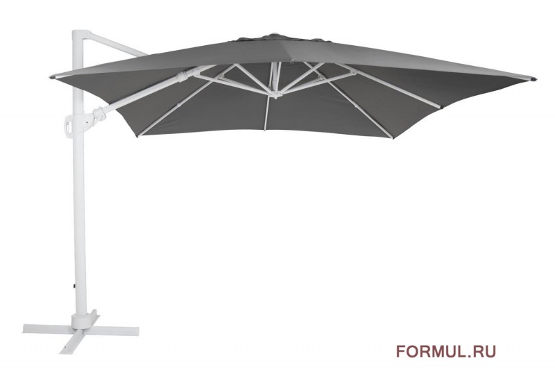 Подвесной зонтик из алюминия с функцией наклона. 250 г полиэстера, окрашенного в пряже, с отличной светостойкостью.