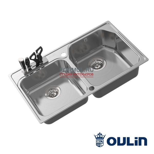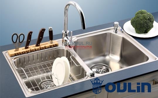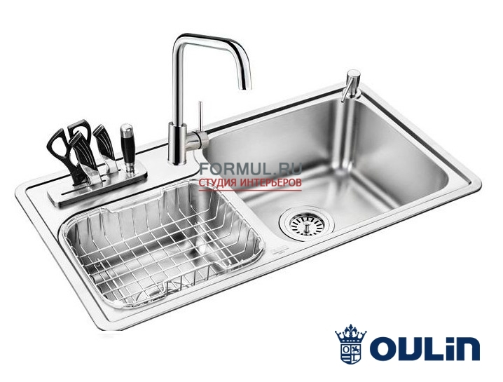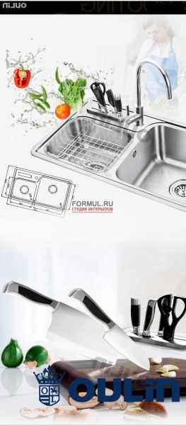 OULIN OL-H9910 практичная мойка для кухни с двумя большими чашами и удобным набором для кухни (ножи+ножницы), идущим в комплекте