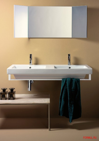 Устанавливается как подвесная на стену с помощью креплений (поставляются в комплекте), так же может устанавливаться как накладная раковина на столешницу.