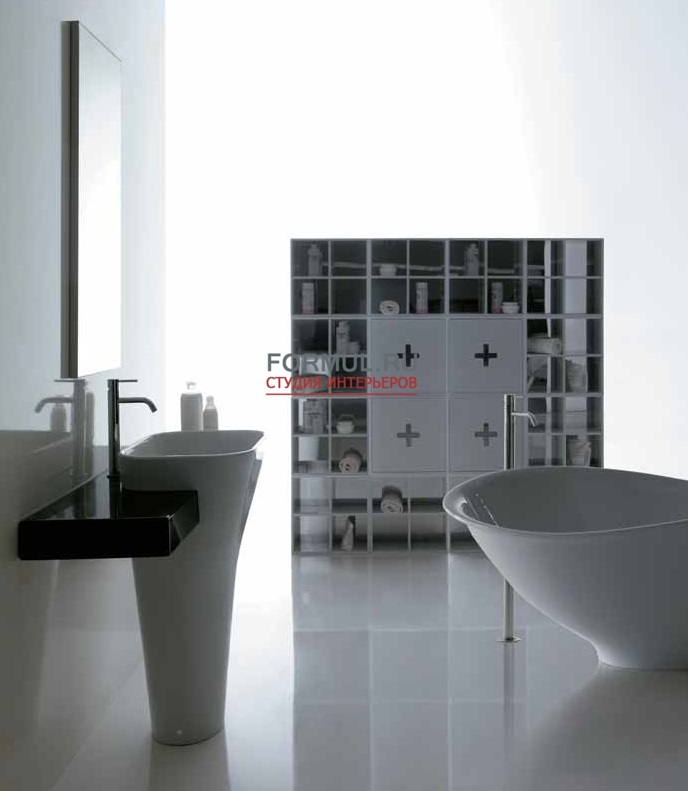 арт.5404R - вариант в ином цветовом исполнении: цвет раковины - белый глянцевый, цвет полки - черный глянцевый.