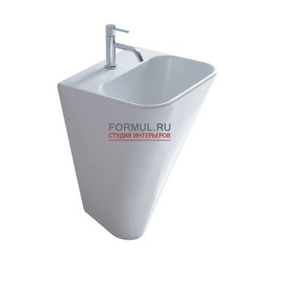 Раковина подвесная, с интегрированным полупьедесталом, цвета «белый глянцевый». Без перелива; одно отверстие под смеситель готово. Подвесной монтаж.