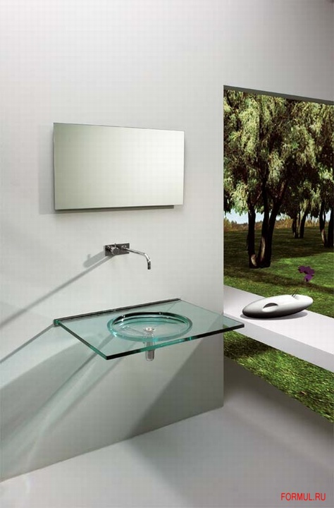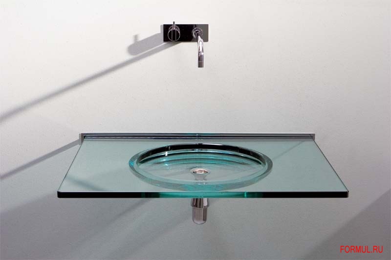 Умывальник настенный из закаленного стекла, крепится с помощью металлической конструкции incassata.Rubinetteria на стене. Дизайнеры студии Rapsel.