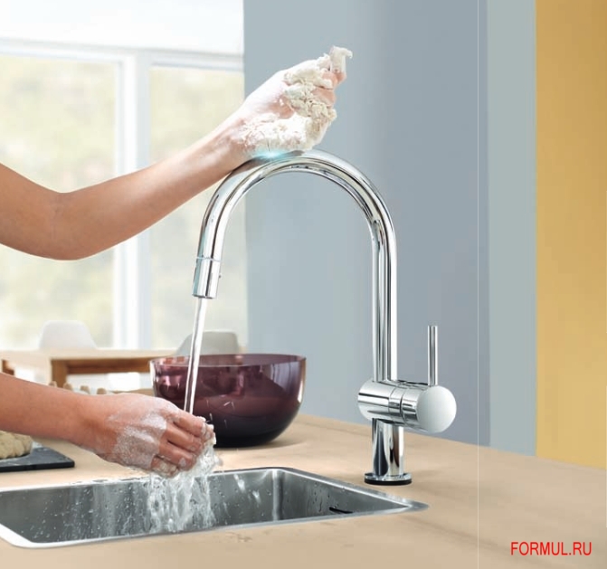 Для того чтобы вымыть грязные руки, теперь не придется сначала испачкать смеситель. Чтобы включить воду, достаточно коснуться Minta Touch тыльной стороной кисти, запястьем или предплечьем, – благодаря этому смеситель всегда остается чистым и гигиеничным.