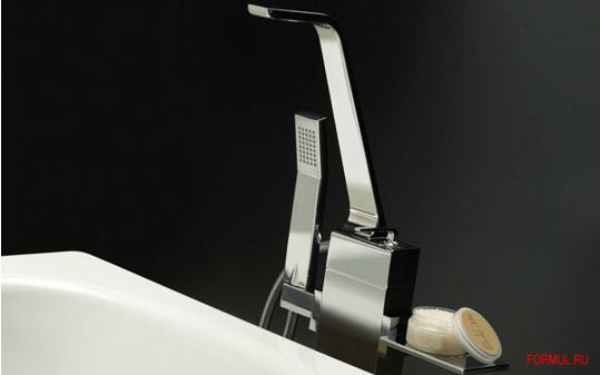Смеситель на борт ванны на 4 отверстия, в комплекте с гибким шлангом 150 см и ручным душем.