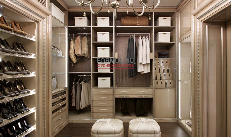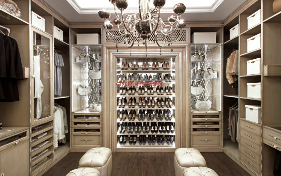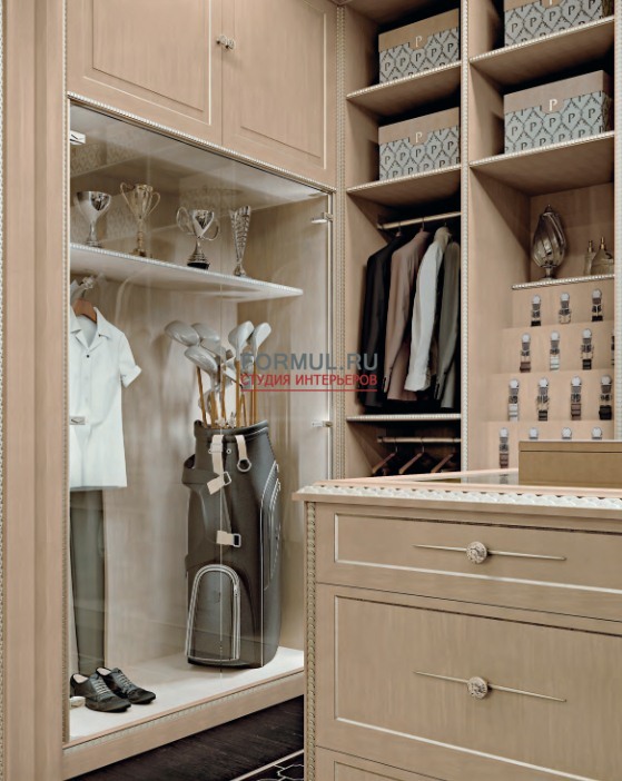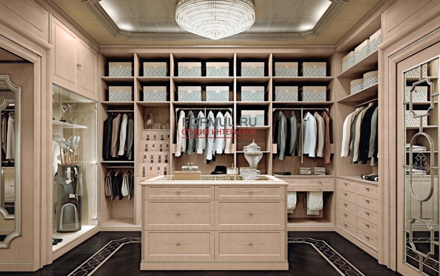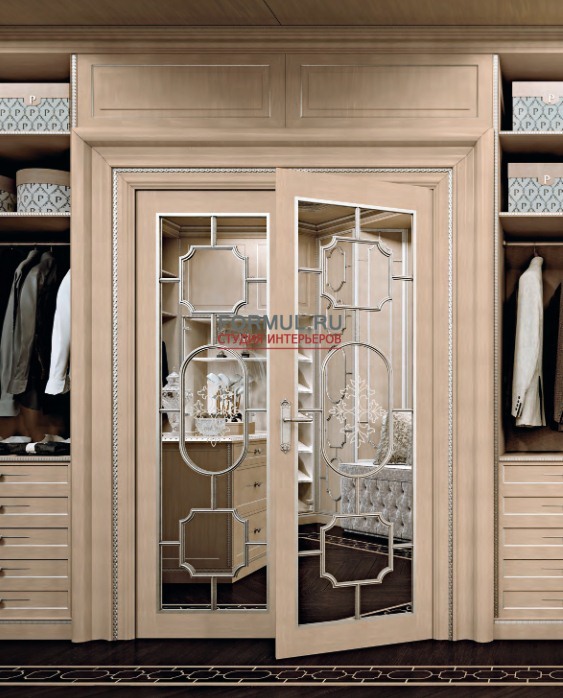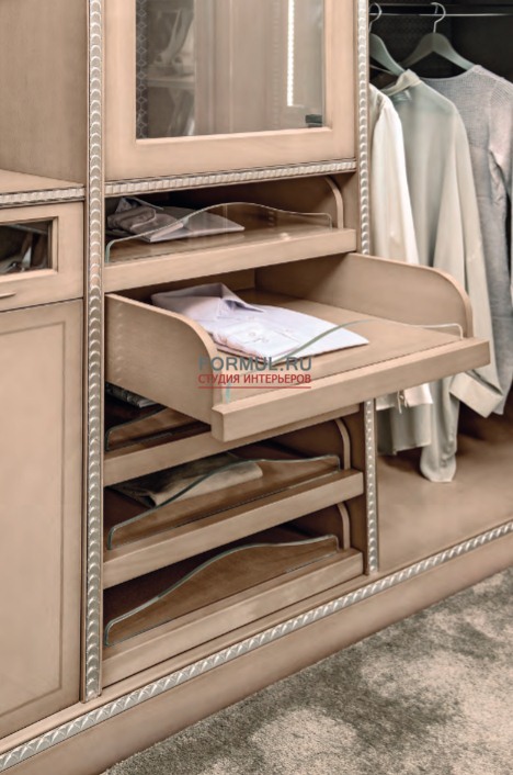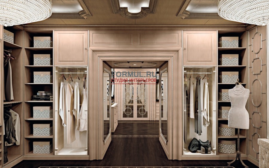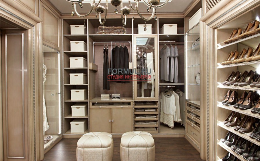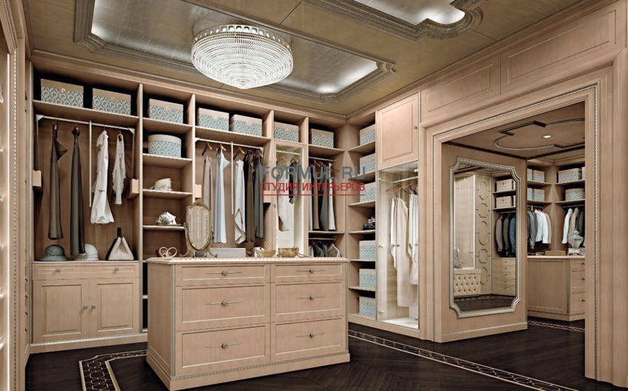 Великолепная гардеробная комната выполненная в классическом стиле. Данная гардеробная производится на заказ, размеры выбираются согласно пожеланиям клиента.