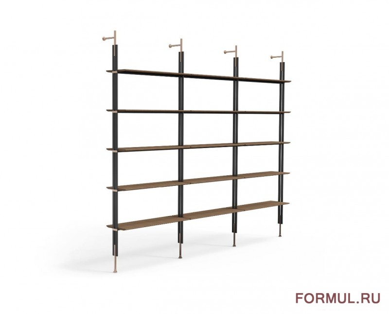 Возможность крепления книжного шкафа Roll к потолку или стене позволяет установить его в центре комнаты для разделения пространства. Крепление к стене осуществляется при помощи стоек из металлических труб в отделке piombo. Полки и выступающие детали можно выбрать в одной цветовой гамме со стойкой или выполнить в контрастной отделке, что придаст ему еще большей элегантности. Модульность книжного шкафа Roll позволяет выбрать наиболее подходящий размер для размещения как в домашней обстановке , так и в офисе. Для удобства предлагается использовать версию с ящиками для хранения книг и других мелких предметов.