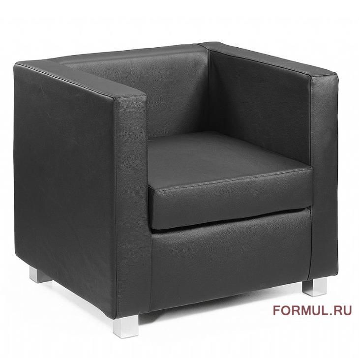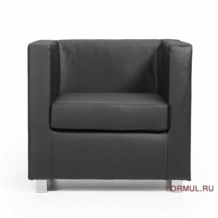 Кресло с каркасом из массива дерева и фанеры с хромированными ножками. Полностью в мягкой обивке.