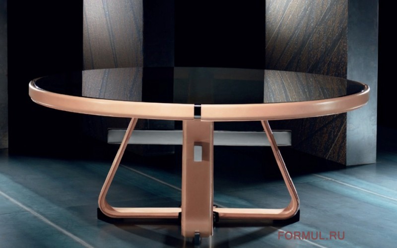 Antimo — идеальный обеденный и офисный стол. Круглый стол со стальным каркасом, полностью обтянутым натуральной кожей Fasem. Столешница из закаленного дымчатого стекла. Стальные вставки с различной отделкой раскрывают характер и внимание к деталям изысканного предмета мебели.