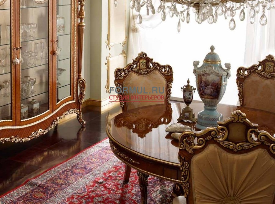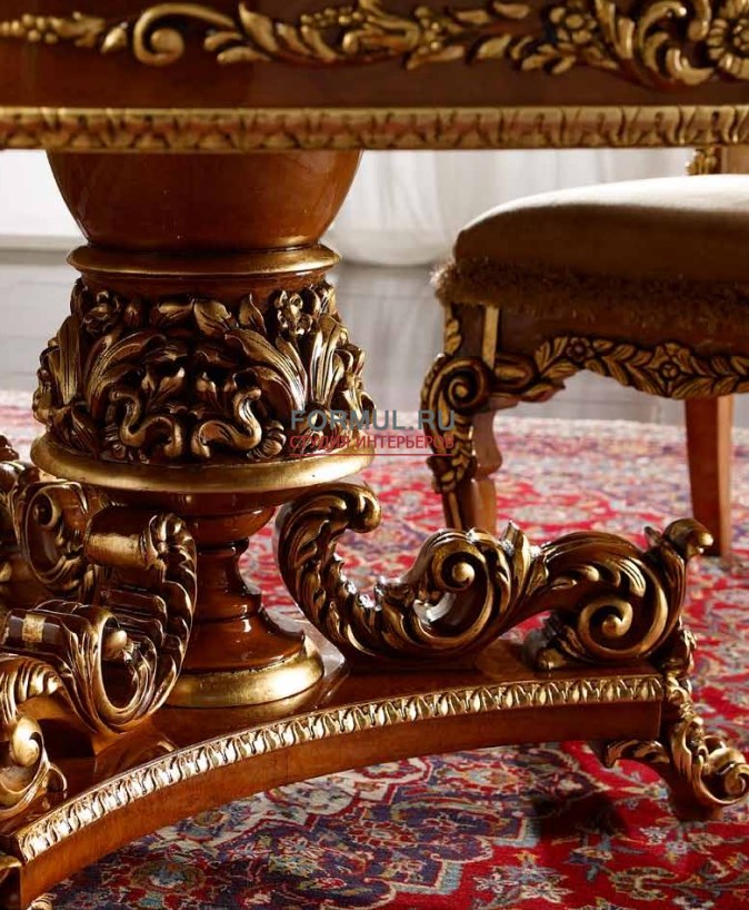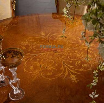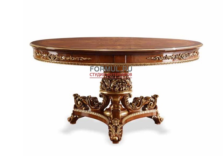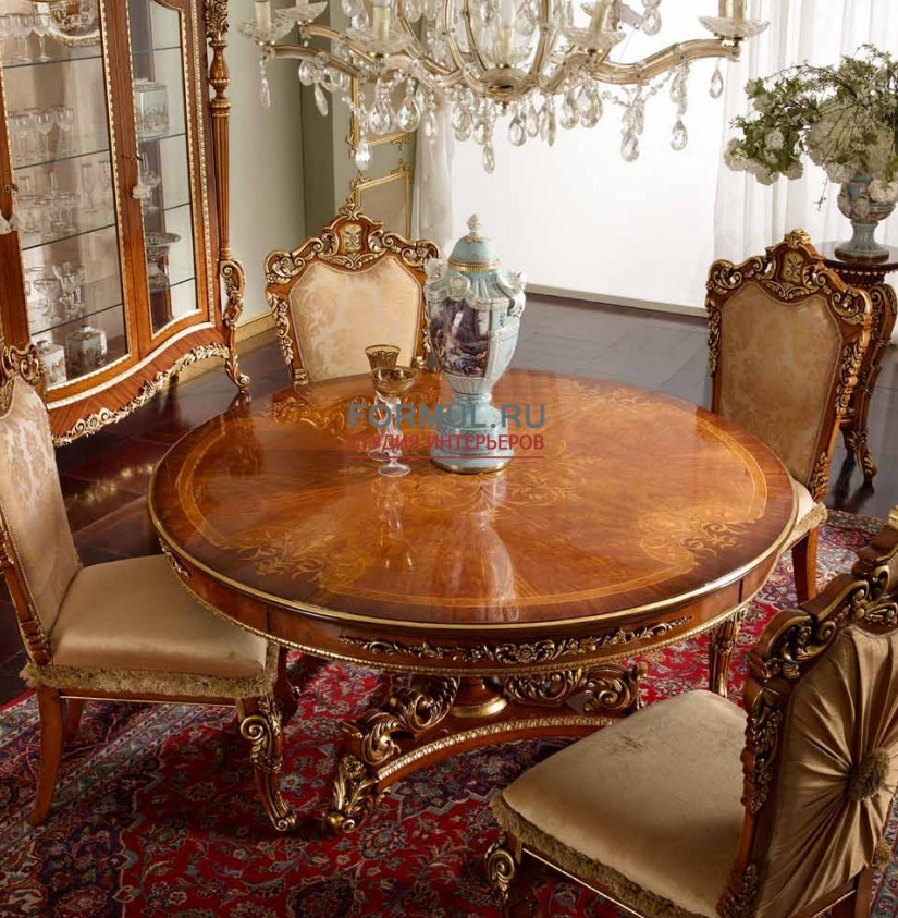Деревянный стол на массивных фигурных ножках в классическом стиле. Украшена интарсией, и отделкой металлом. Стол может быть выполнен в круглой или прямоугольной форме фиксированной длины и с возможностью раздвижения. Богатая резьба ручной работы придает аристократический дух всей мебели фабрики Agostini Mobili. Такие изделия никогда не выходят из моды.