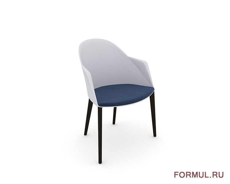 Стул на четырех ножках из дерева. Полипропиленовая оболочка доступна в 5 цветах; стул может быть или с подушкой, прикрепленной к сиденью, из ткани, кожи, искусственной кожи или материала заказчика; или полностью обитый тканью, кожей, искусственной кожей или материалом заказчика.