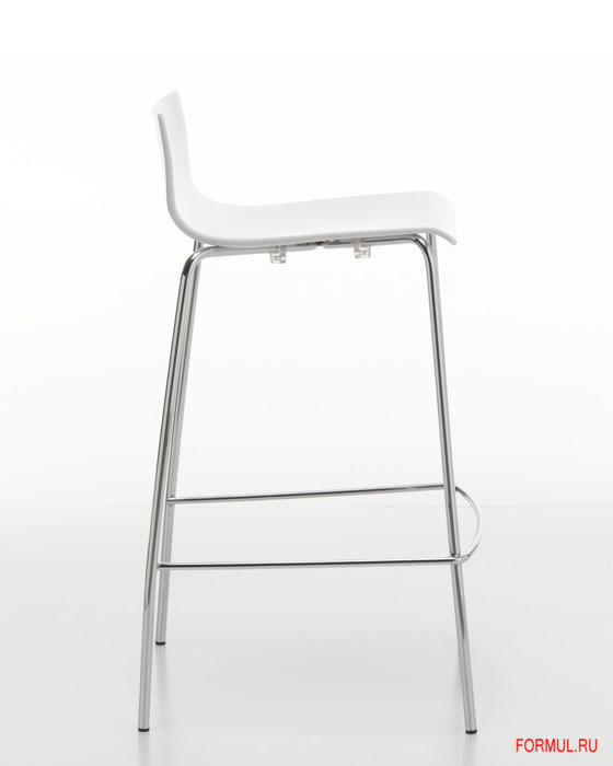 Сидение и спинная часть изготовлены из пластмассы белого или черного цвета, основание имеет хромированный цвет.