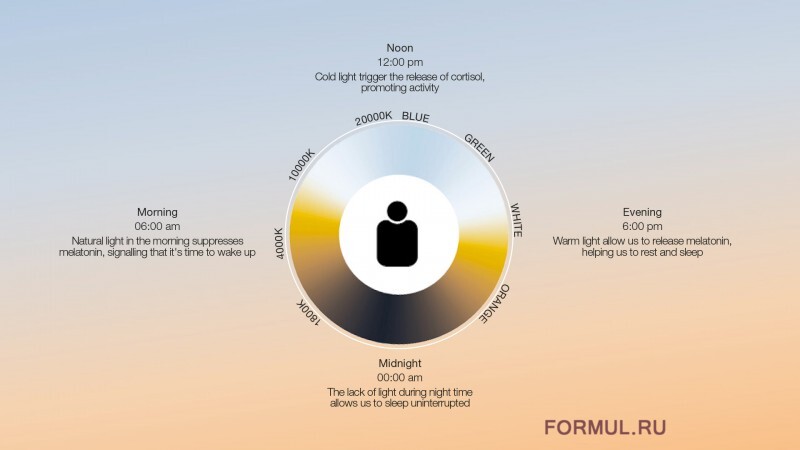 Когда работает Dusk, стены оживают: утром они купаются в розоватом свете зари, днём наполняются нейтральным белым сиянием, вечером — теплеют до золотистых тонов. Dusk не просто освещает, а становится живым элементом интерьера, способным менять настроение и восприятие пространства, поддерживая естественные биоритмы и улучшая эмоциональное состояние.