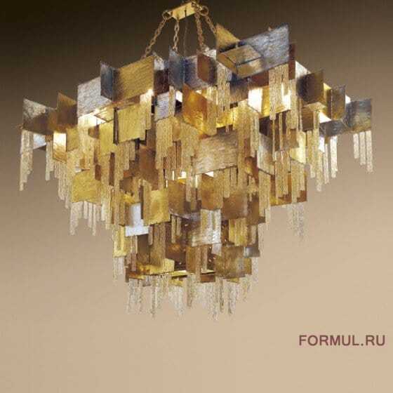 Коллекция City, созданная дизайнером Э. Де Джирарди для итальянской фабрики MM Lampadari, представляет собой современную интерпретацию стиля ар-деко в освещении. В основе концепции - динамичная композиция из металлических пластин, искусно сложенных в геометрические формы. Каждый элемент покрыт патинированной позолотой с серебристыми акцентами, что создает эффект благородного старения. Для усиления визуального эффекта дизайнер дополнил конструкции стеклянными элементами и хрустальными подвесками, которые преломляют свет, создавая богатую игру бликов.