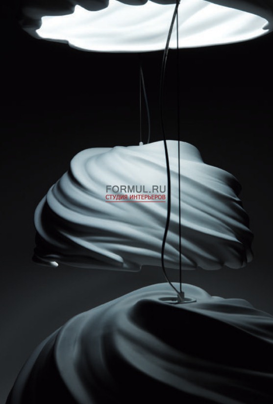 Криволинейная форма лампы берет вдохновение из желания показать движение жидкой керамики, запущенной в пространство. Созданный вихрь, застывший вокруг источника света, дал форму рассеивателю света, погожего на явление природы, известное как циклон, которое и дало название этой подвесной лампе. Работа над чертежами, помощь современных технологий и программ дало возможность молодому дизайнеру контролировать и в результате получить желаемую форму рассеивателя света, хотя окончательная форма лампы была получена благодаря модели из гипса, сделанной вручную.