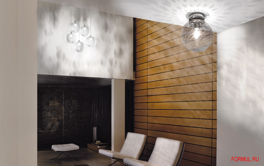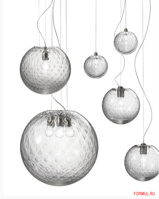 Характер стеклянной текстуры этой коллекции ламп обусловлен применением техники "baloton", которая заключается в помещении воздушных пузырьков в стекло во время обработки.