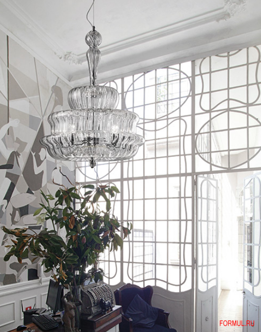 Ключ к прочтению коллекции Novecento желание синтезировать традиции муранского стекла в свой наиболее узнаваемый элемент - профиль, воспроизведенный в кристальной оболочке кругового силуэта светильника и сохраняющий характеристики оригинального дизайна.