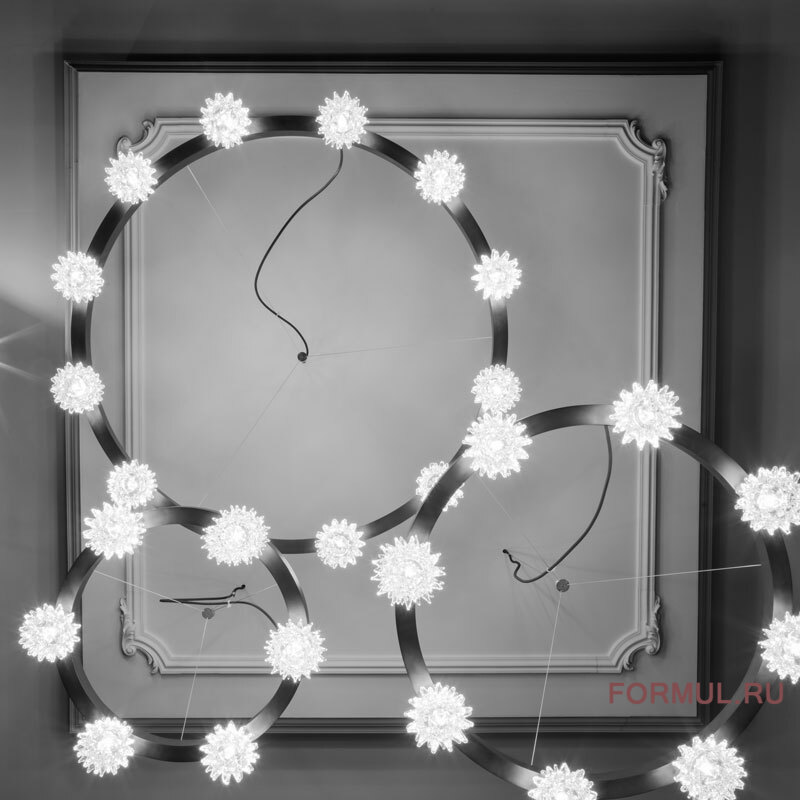 Светильник Averlino от знаменитой итальянской фабрики Arte Veneziana — это воплощение изысканной гармонии между многовековыми традициями венецианского стеклодувного искусства и современным дизайнерским видением. Его утончённая композиция из шести прозрачных сфер, выполненных из муранского стекла по уникальной технологии "pinza", напоминает застывший в воздухе каскад хрустальных капель, создавая эффект невесомости и изящества.
