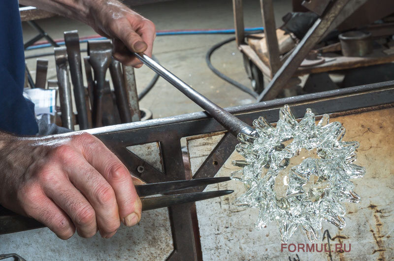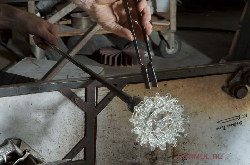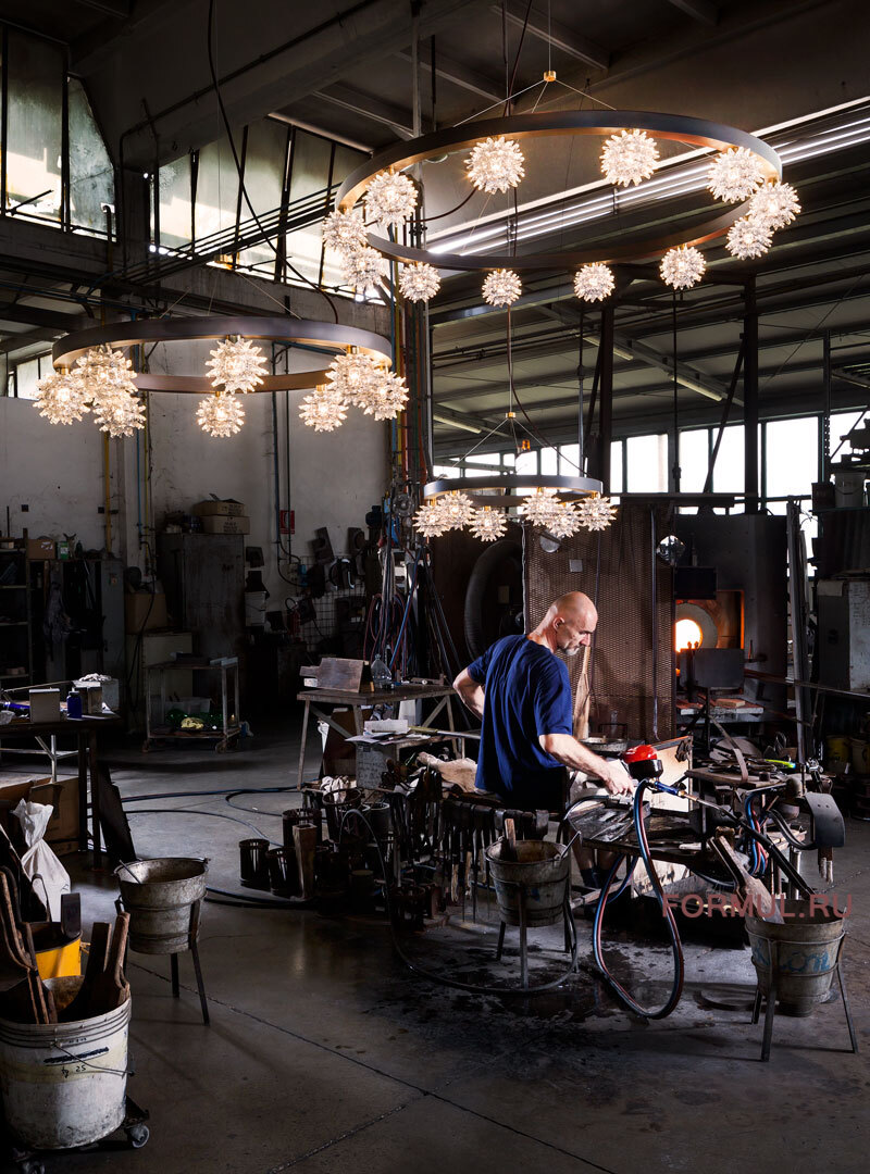 Каждый стеклянный элемент светильника выдувается вручную мастерами с острова Мурано, что придаёт изделию неповторимую текстуру и удивительную игру света. При включении светильник наполняет пространство мягким рассеянным сиянием, создавая атмосферу уюта и благородной роскоши.