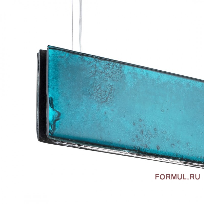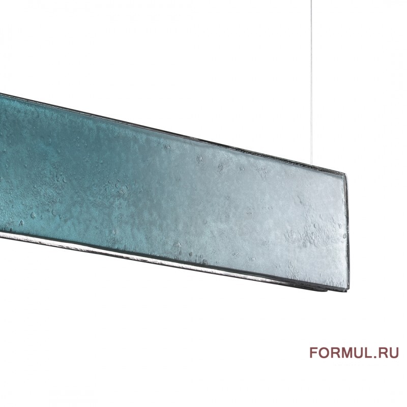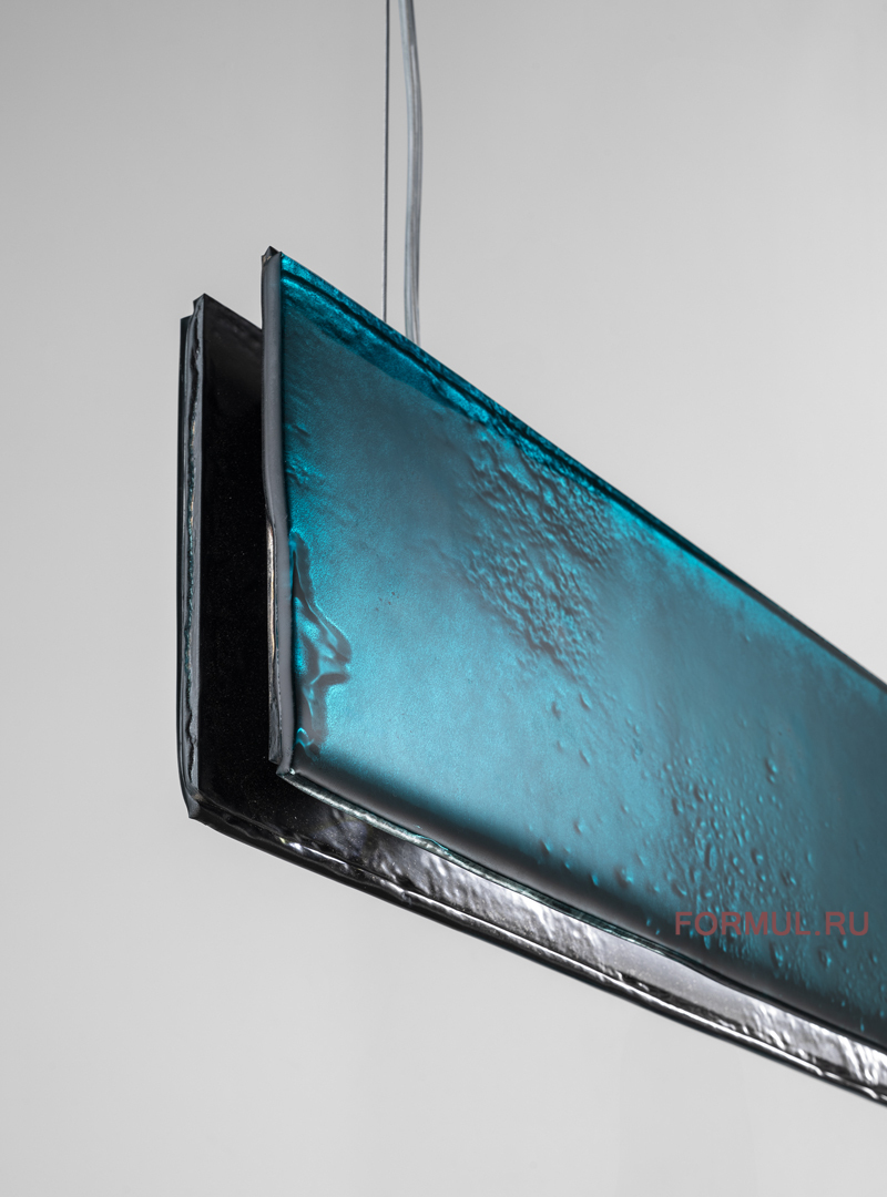 Подвесной светильник Steca выполнен из обожжённого стекла, оформленного в технике градиентного перехода от аквамаринового оттенка к насыщенному антикварному серебру. Эта уникальная отделка придаёт изделию глубину и динамичность, создавая эффект мягкого свечения. Металлический каркас с матовой чёрной лакировкой обеспечивает прочность и надёжность конструкции, а регулируемый стальной трос позволяет адаптировать высоту светильника под особенности интерьера.