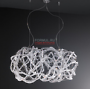Коллекция с металлической структурой, выполняемой вручную, абажурами из органзы и подвесками SW.