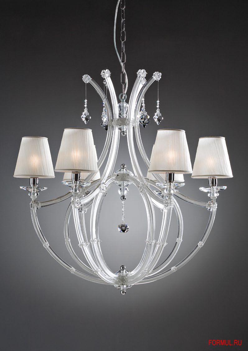 Стекляння люстра ручной работы в классическом стиле с 6 лампами. Линия Livia. Предлагается 8 видов отделки и 2 вида абажуров в 3 цветах - конические или цилиндрические.