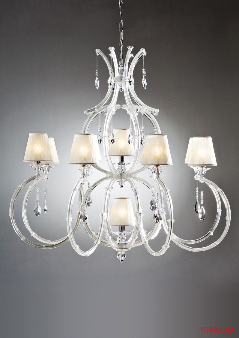 Стеклянная люстра ручной работы в классическом стиле с 8 лампами. Линия Irene. Предлагается 8 видов отделки и 2 вида абажуров в 3 цветах - конические или цилиндрические.