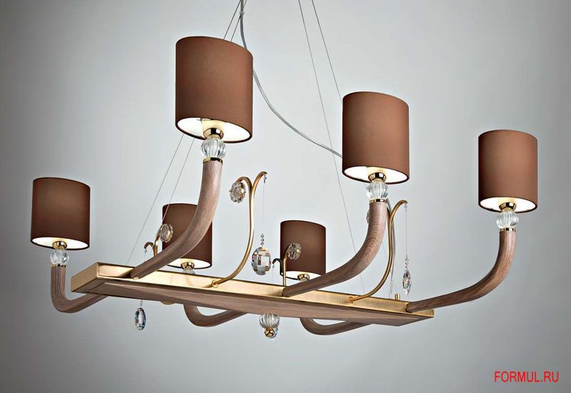 Деревянная люстра ручной работы в классическом стиле с 6 лампами. Линия Max. Предлагается 5 видов отделки для каркаса и 2 вида отделки для абажуров.