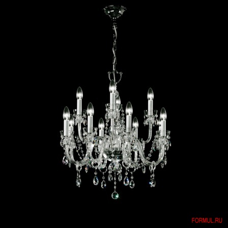 Модель разработана для просторного помещения, великолепно дополнит интерьер в классическом стиле. Светильник рассчитан на 12 лампочек, с цоколем E14, одна лампочка с максимальной мощностью 40 ват. Дизайн дополняют хрустальные подвески и кристаллы Swarovski.