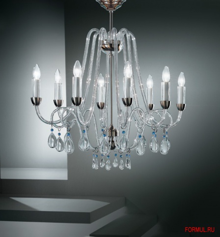 Модель разработана для просторного помещения, рассчитана на 8 лампочек, с цоколем E14, одна лампочка с максимальной мощностью 40 ват. Люстра великолепно дополнит интерьер в классическом стиле. Материалы: металл, хрусталь.