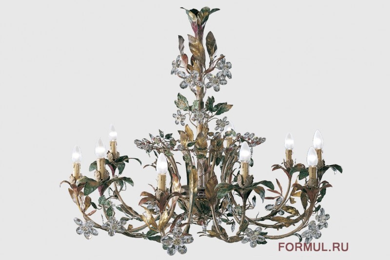 Люстра L-ZAGARA/10 от флорентийской мануфактуры Mechini — это воплощение изысканности и художественного мастерства, характерного для флорентийской школы декоративного искусства. Созданная вручную из кованого железа, она украшена богемскими кристаллами и муранским стеклом, придающими ей особую утончённость и элегантность. Дизайн люстры вдохновлён природными мотивами, что характерно для стиля «флористика», присущего продукции Mechini.