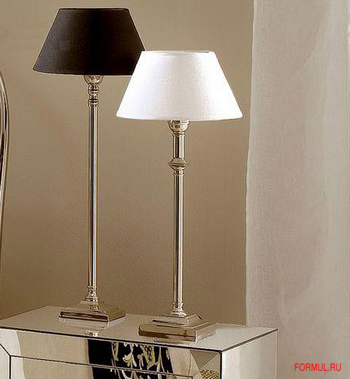 Настольная лампа на металлической никелированной опоре. Белый или черный абажур.
