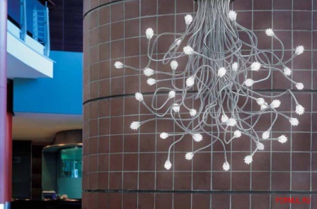 40 лампами от итальянского производителя Aureliano Toso в современном стиле. Материал рассеивателя – прозрачное стекло. Арматура – хромированный металл. 6, 15, 24 или 40 лампочек 20 и 10 W G4