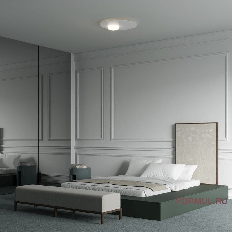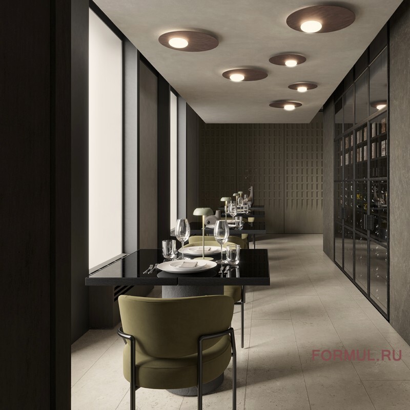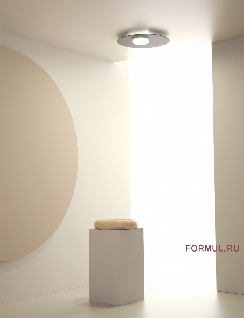 Конструкция-парадокс: массивный алюминиевый диск (доступный в трёх эффектных вариантах отделки) будто случайно смещён относительно опалового стеклянного диффузора, создавая впечатление намеренной небрежности гения. Эта асимметрия — не дефект, а филигранный расчёт, благодаря которому светильник оживает, меняя характер в зависимости от угла обзора. Двойной световой сценарий (мягкое свечение сквозь опал и отражённый свет от диска) делает Kwic универсальным инструментом светового дизайна.