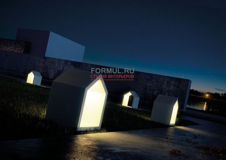 Уличный светильник White house известной испанской фабрики B-Lux создает интересную игру светотени, мягко освещая отраженным светом дорожки, настилы и газоны.