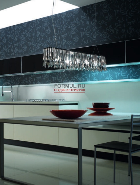 Коллекция состоит за подвесных ламп для внутренних помещений, в двух размерах. Металлическая структура из блестящего хрома. Декоративные элементы – столовые приборы из нержавеющей стали. Электрическая часть рассчитана на галогеновые лампы от сетевого напряжения.