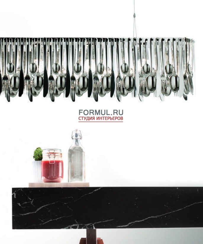 Дизайнер Ali Siahvoshi верит, что можно превратить предметы обихода в светильники, дать им новую перспективу и возможность развлечь нас. В данной коллекции мы не смотрим на новую и необычную форму, а на то, что уже существует, например столовые приборы, и находим им новое применение. В результате мы можем дать новый образ и цель этим предметам обихода и продлить их жизненный цикл. Этот светильник должен приблизиться к людям, быть позитивным, изумляющим и развлекательным предметом интерьера.