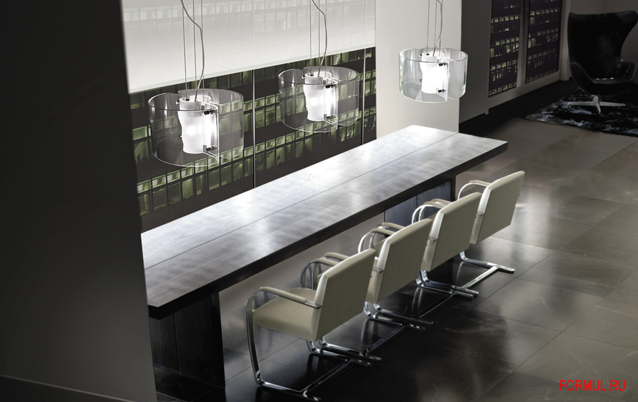 Концепция серии светильников Chimera родилась из идеи прозрачного тела, которое фильтрует свет, скрыв лампу в центре диффузора из сатинированного кристалла.