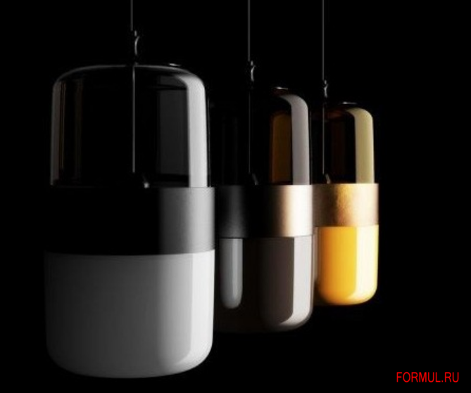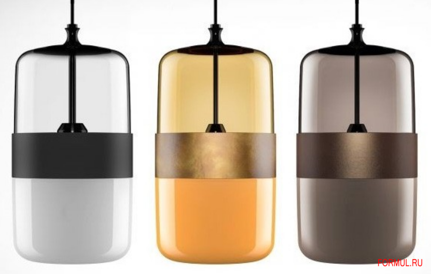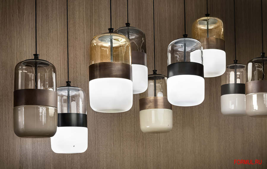 Коллекция подвесных светильников из дутого стекла, предлагается в трех различных эксклюзивных цветовых решениях, сочетающихся с разными отделками металлического кольца. Дутое стекло представляет собой цельный элемент. Благодаря особому процессу обработки стекло приобретает прозрачный вид в верхней части, а нижная часть сохраняет цвет рассеивателя.