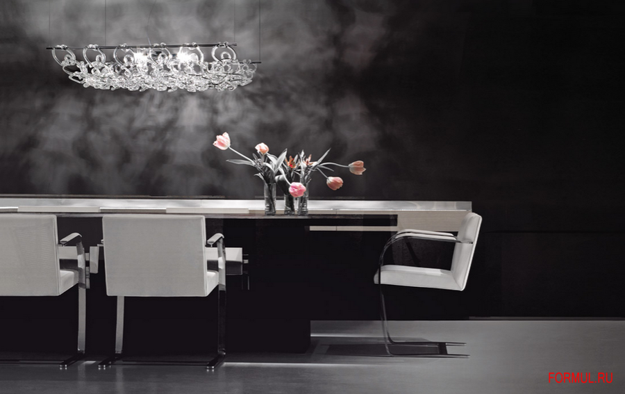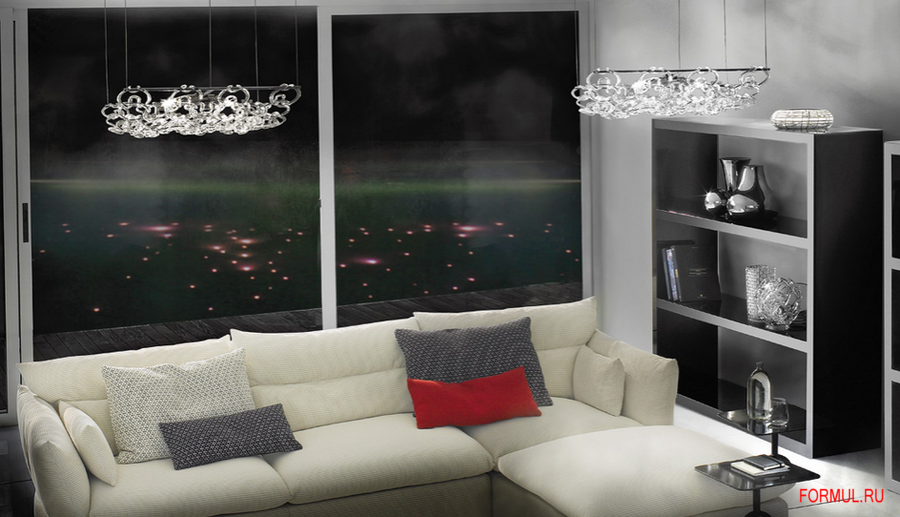 Версия 3D светильника Giogali позволяет создавать как горизонтальные, так и вертикальные модели посредством соединения между собой кристальных крючков для стандартных установок или выполненных на заказ.