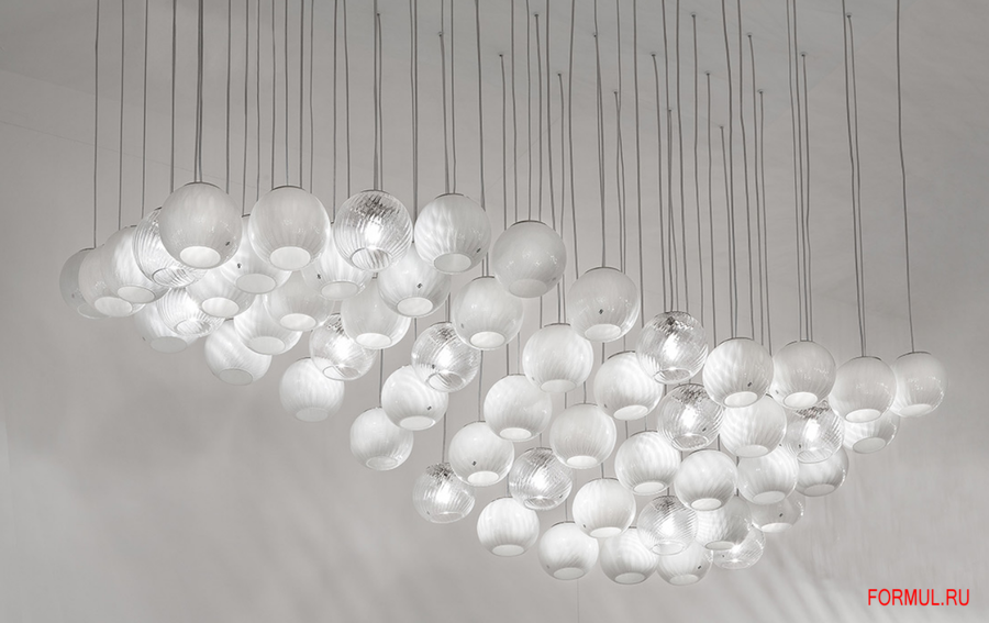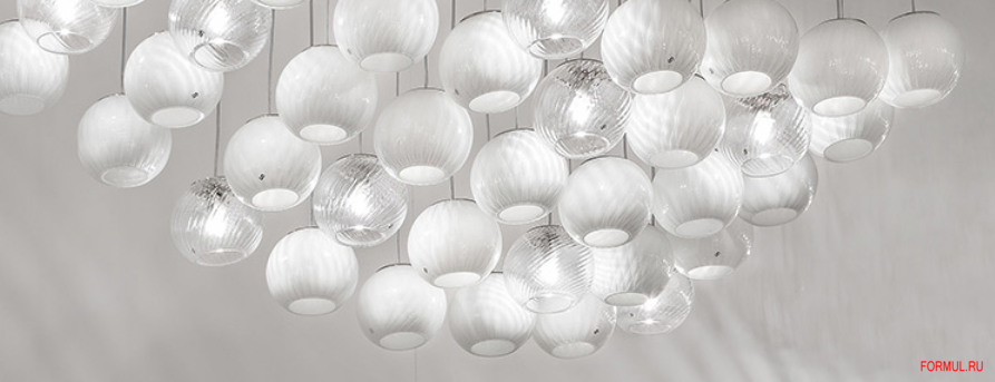 Oto сферические элементы из дутого стекла , с двумя вариантами декора, с источником света или без него. Особый дизайн позволяет установить элементы в вертикальном положении, создавая неограниченное число разнообразных композиций по собственному выбору клиента.