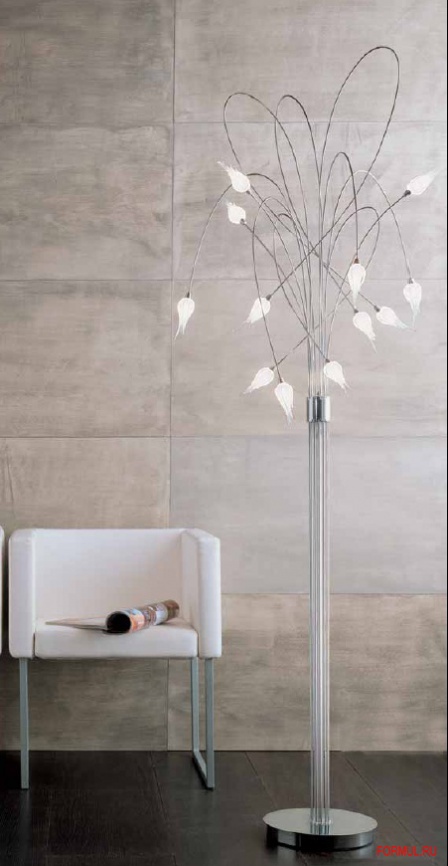 Торшер Zashi от итальянского производителя Aureliano Toso в современном стиле. Материал рассеивателя – сатинированное стекло. Арматура – хромированный металл. 12 лампочек 20 W G4.